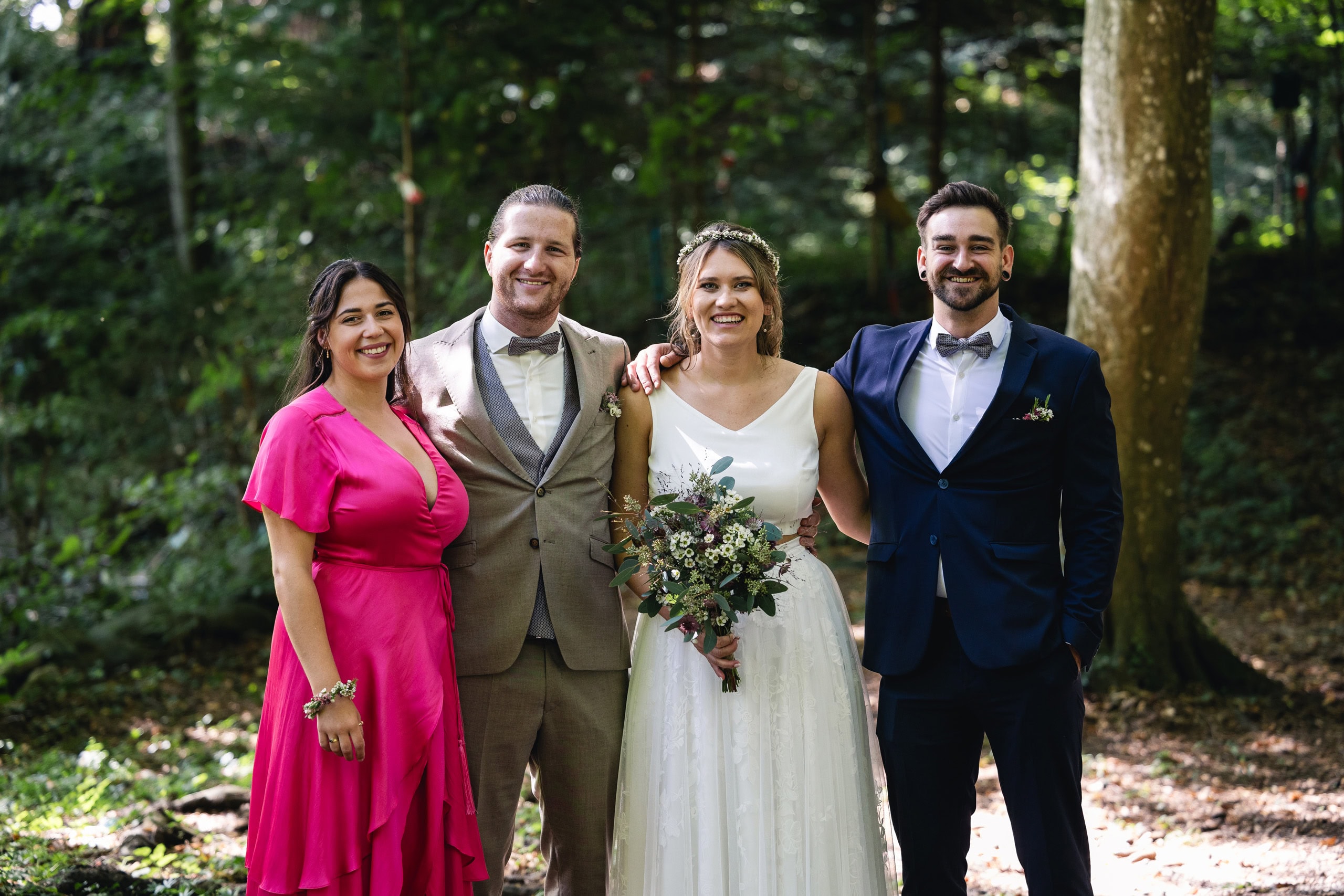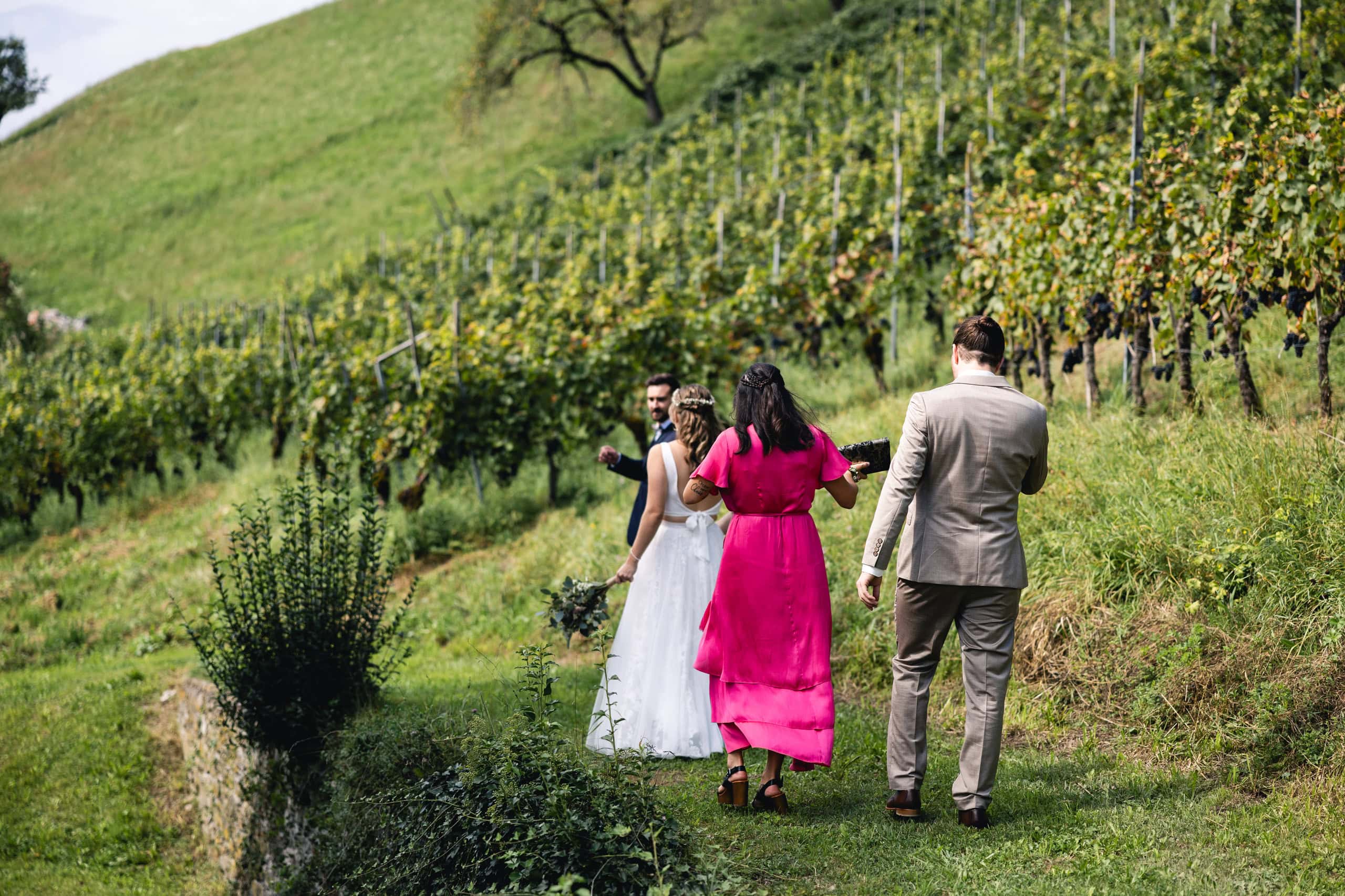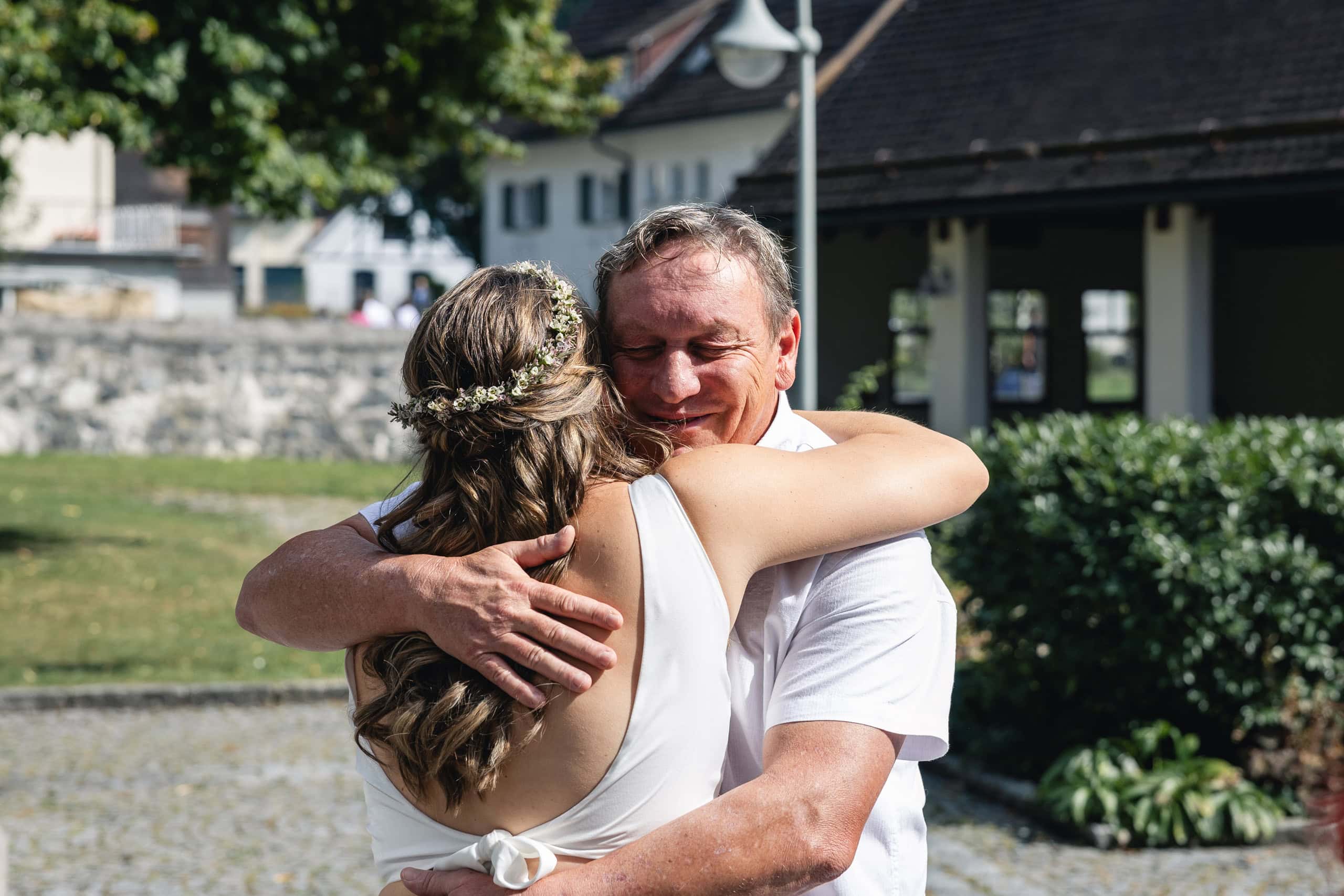 Diese Hochzeit begann mit der standesamtlichen Trauung im Röthner Schlössle. Anschließend ging es zur Agape nach Sulz in ein Gasthaus, bevor der Tag mit einer ausgelassenen Feier im Röthner Vereinshaus seinen Abschluss fand. Diese Abfolge aus Trauung, Begegnung und Feier spiegelt sehr gut wider, wie vielseitig ein Hochzeitstag in Vorarlberg gestaltet werden kann.
