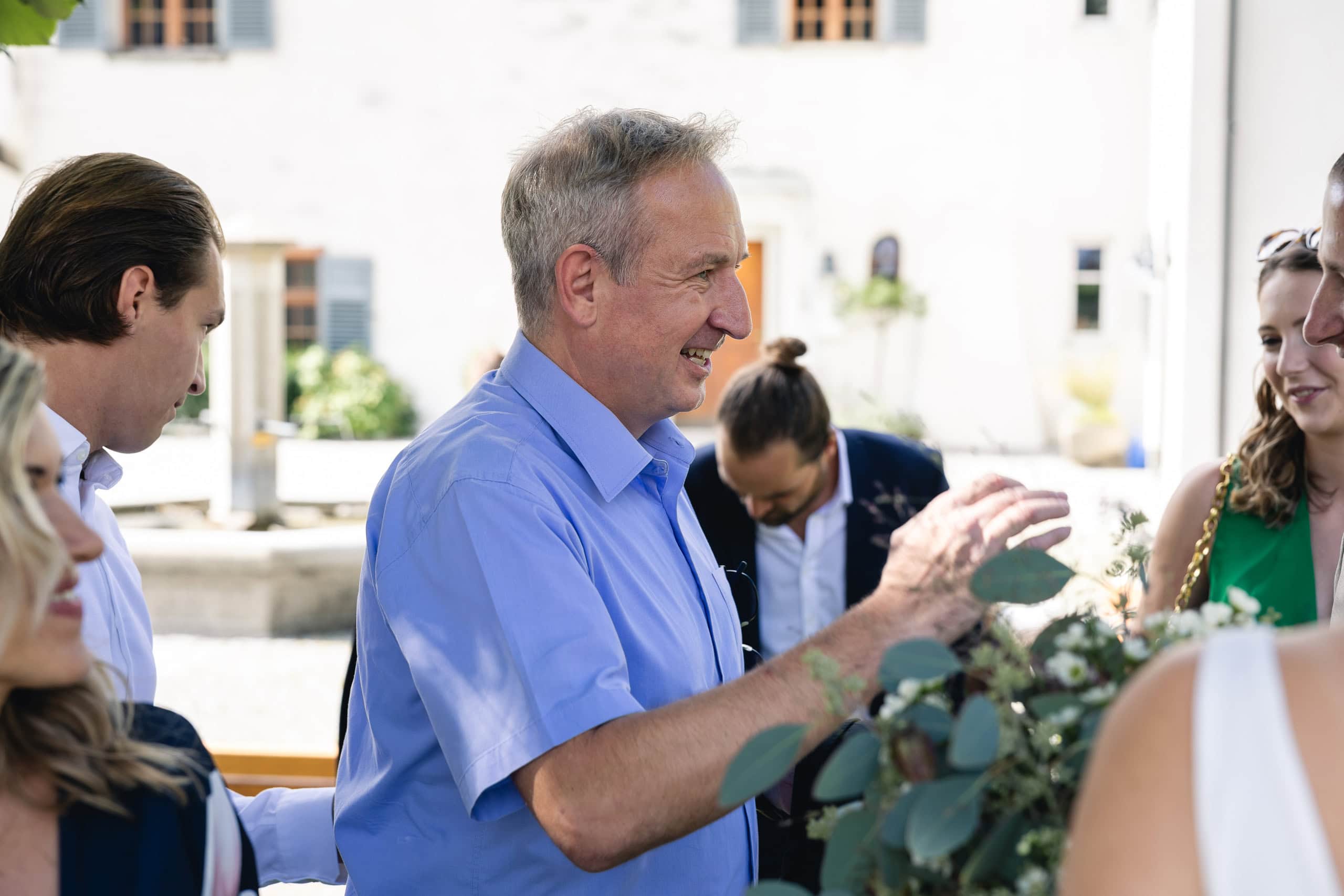 Ich habe diese Hochzeit den gesamten Tag über fotografisch begleitet – vom Ankommen der Gäste bis zur Feier am Abend. Mein Ansatz ist dabei stets derselbe: unaufdringlich beobachten, präsent sein und genau dann eingreifen, wenn es sinnvoll ist. Gruppenfotos oder gestellte Bilder entstehen auf Wunsch, ohne den natürlichen Ablauf des Tages zu unterbrechen. Der Fokus liegt jedoch immer auf echten Momenten, ehrlichen Reaktionen und der Stimmung zwischen den einzelnen Programmpunkten.