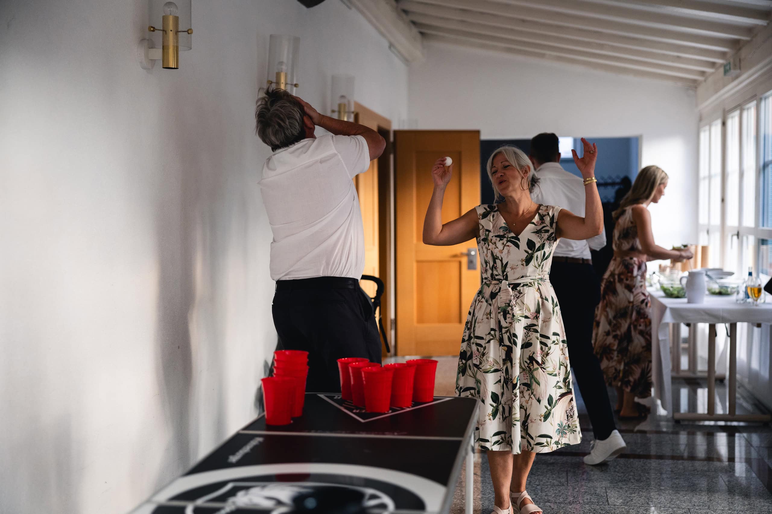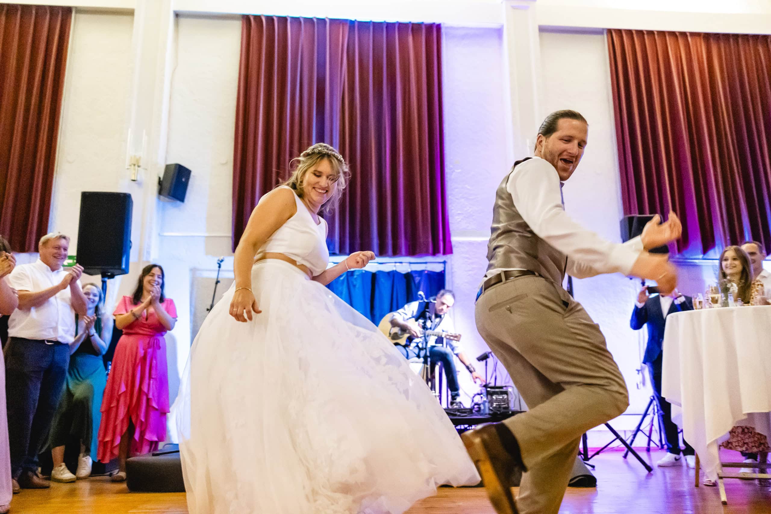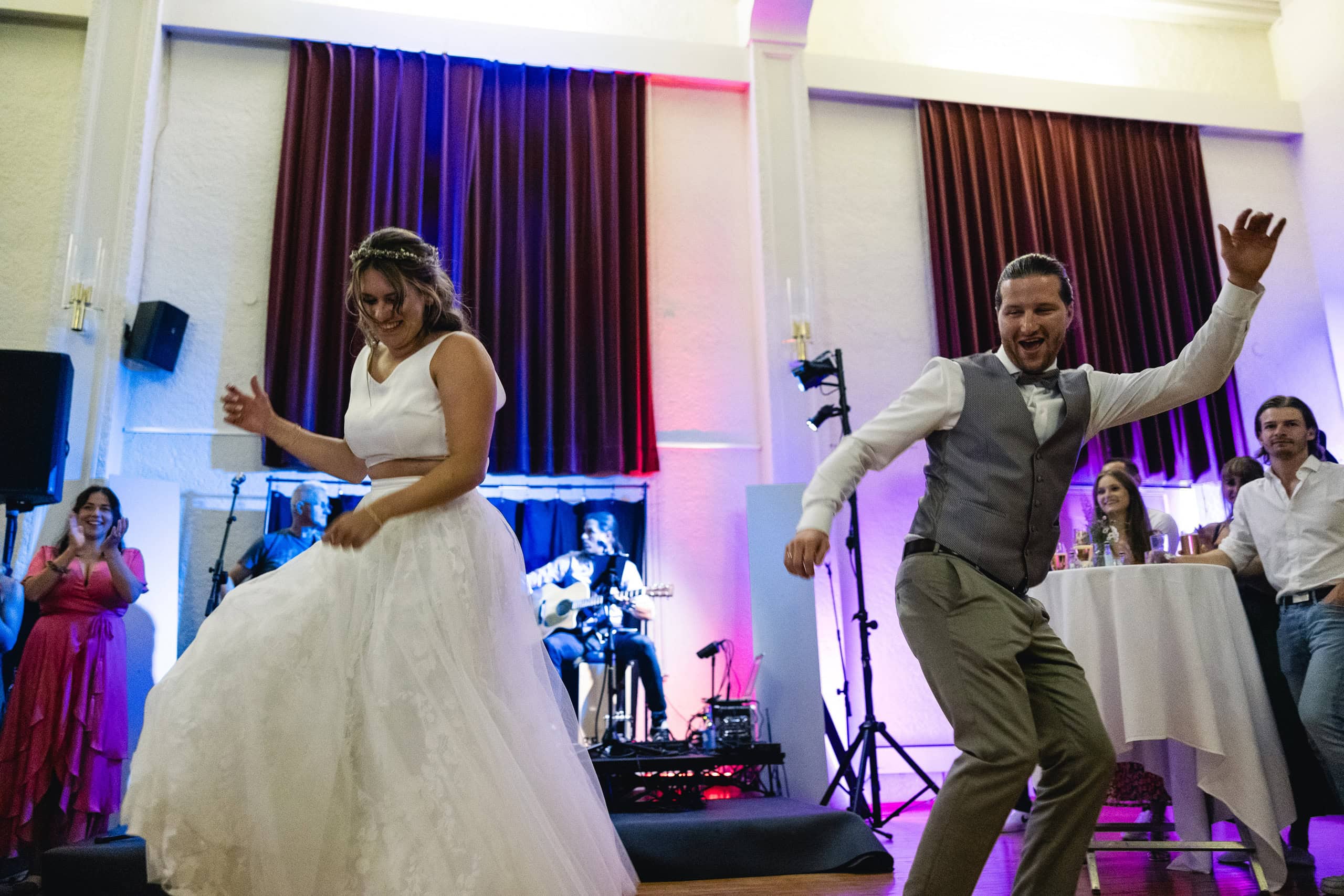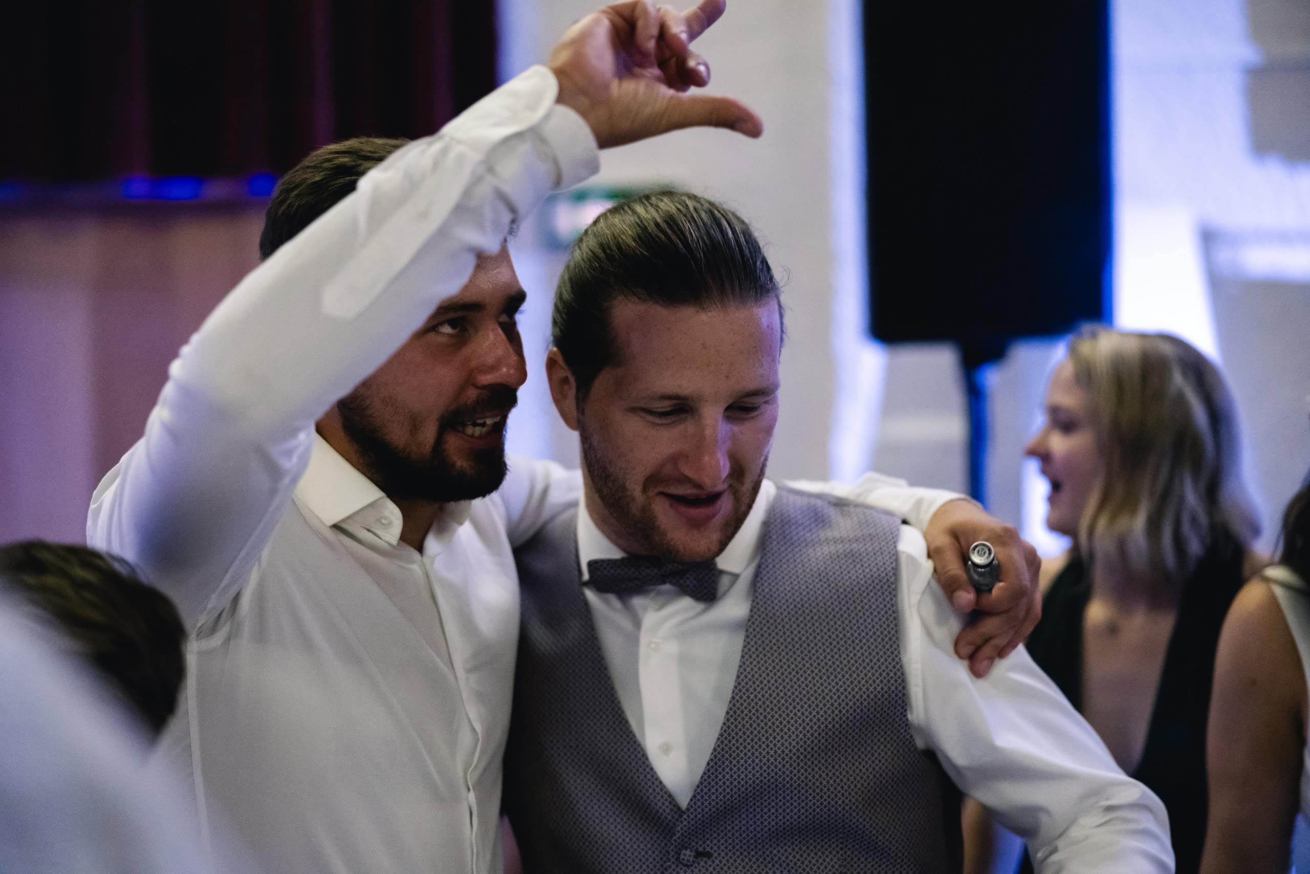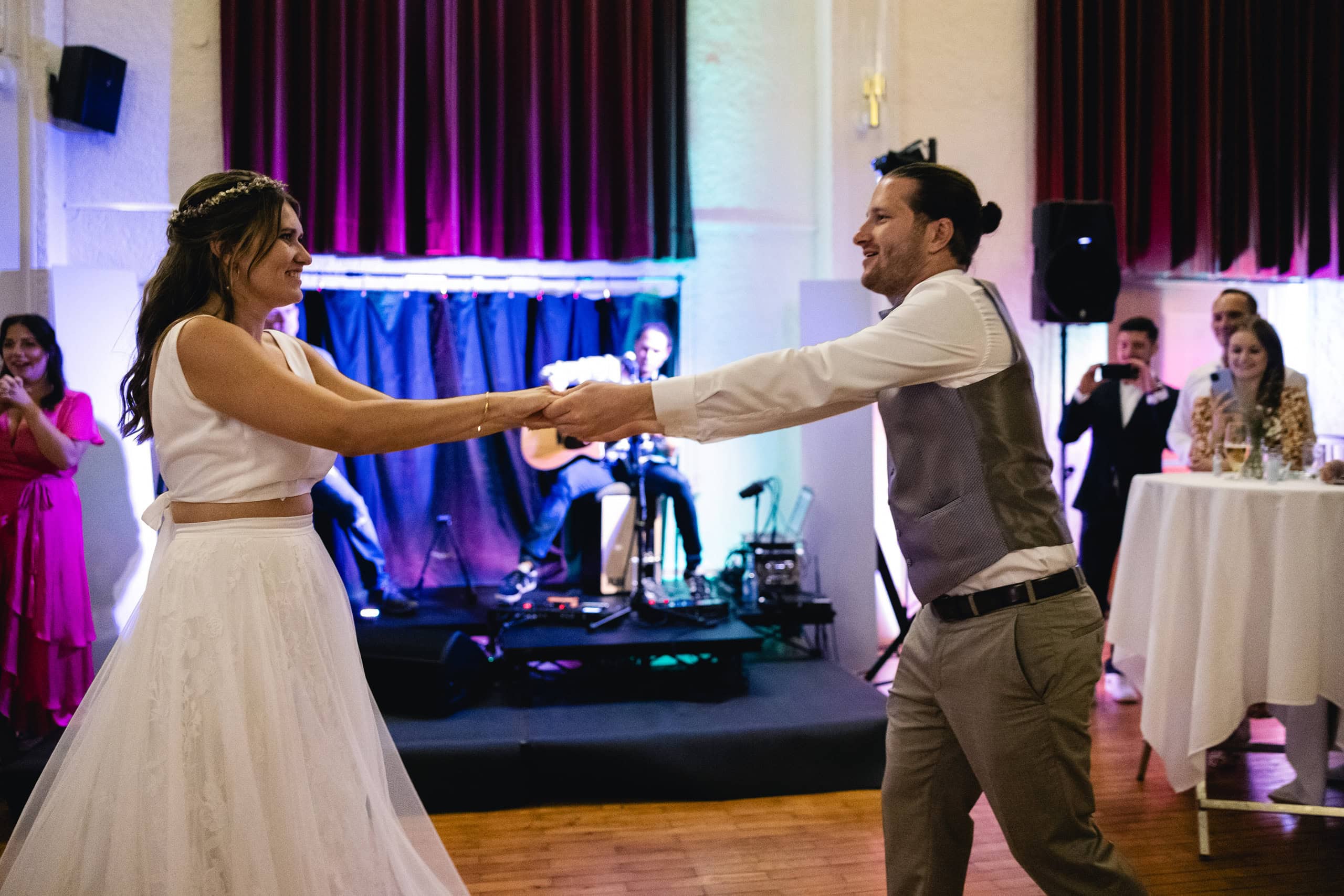 Die ausgelassene, moderne Stimmung dieser Hochzeit setzte sich besonders bei der Feier im Röthner Vereinshaus fort. Hier entstehen oft die emotionalsten Bilder des Tages – ungezwungene Gespräche, Lachen, Tanzen und genau jene Augenblicke, die nicht geplant werden können. Diese Momente fotografisch festzuhalten, ohne sie zu beeinflussen, ist für mich ein zentraler Bestandteil einer authentischen Hochzeitsreportage.